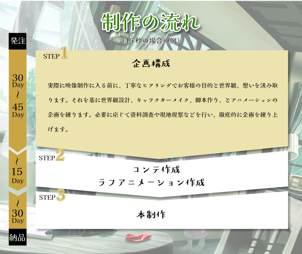 • 納期目安:約12週間(修正3回まで含む)
